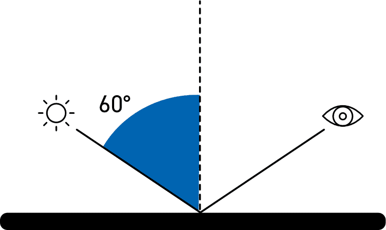 ISO 2813 和 ASTM D523(最常用的標準)描述了三個測量角度來測量所有表面的光澤度。